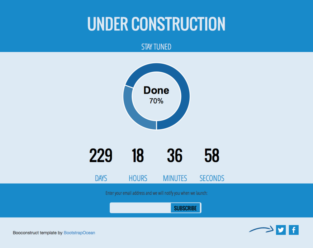 If your site is under construction yet Booconstruct bootstrap template will help you to build a nice looking landing page.